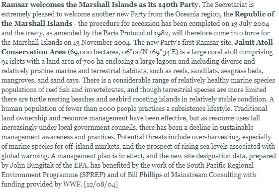 Jaluit Atoll Ramsar Information Sheet, 2003.